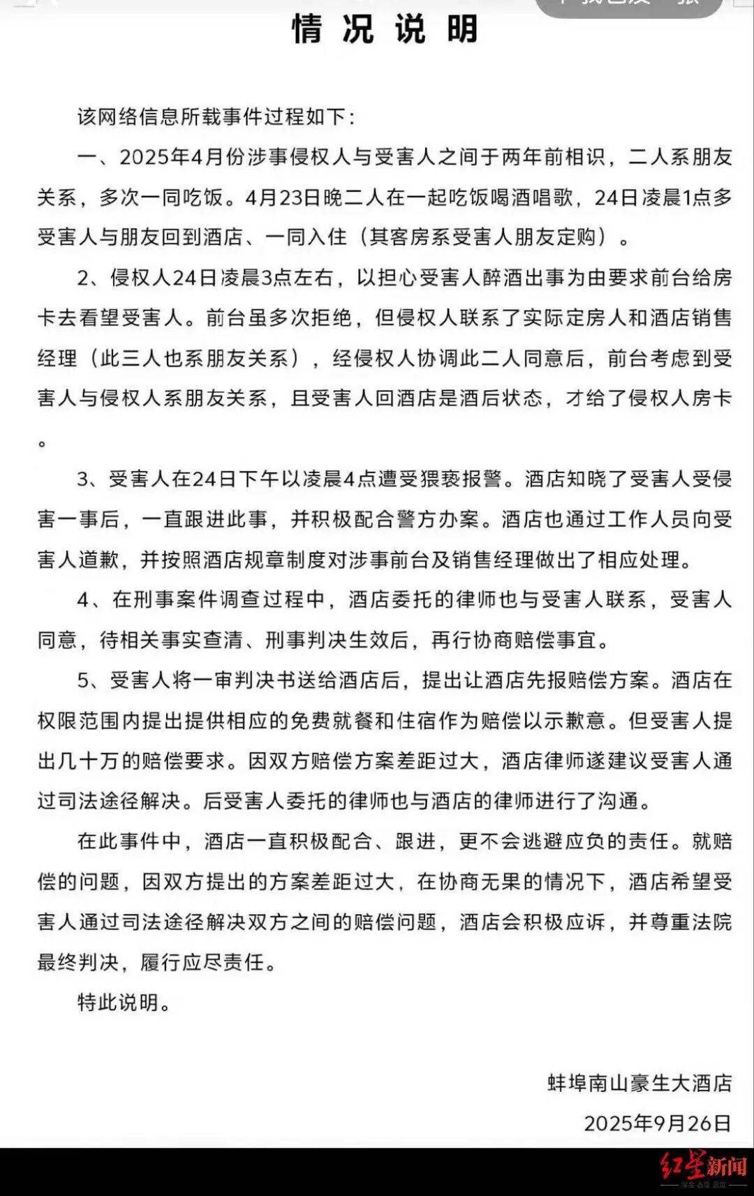 对于这份说明,“小云”表示,她以及她的律师并未提出具体赔偿金额。此事给她造成了很大的伤害。她认为酒店存在严重管理失职,店方必须拿出一个端正的态度,哪怕她一分钱都不要,店方也必须公开道歉!