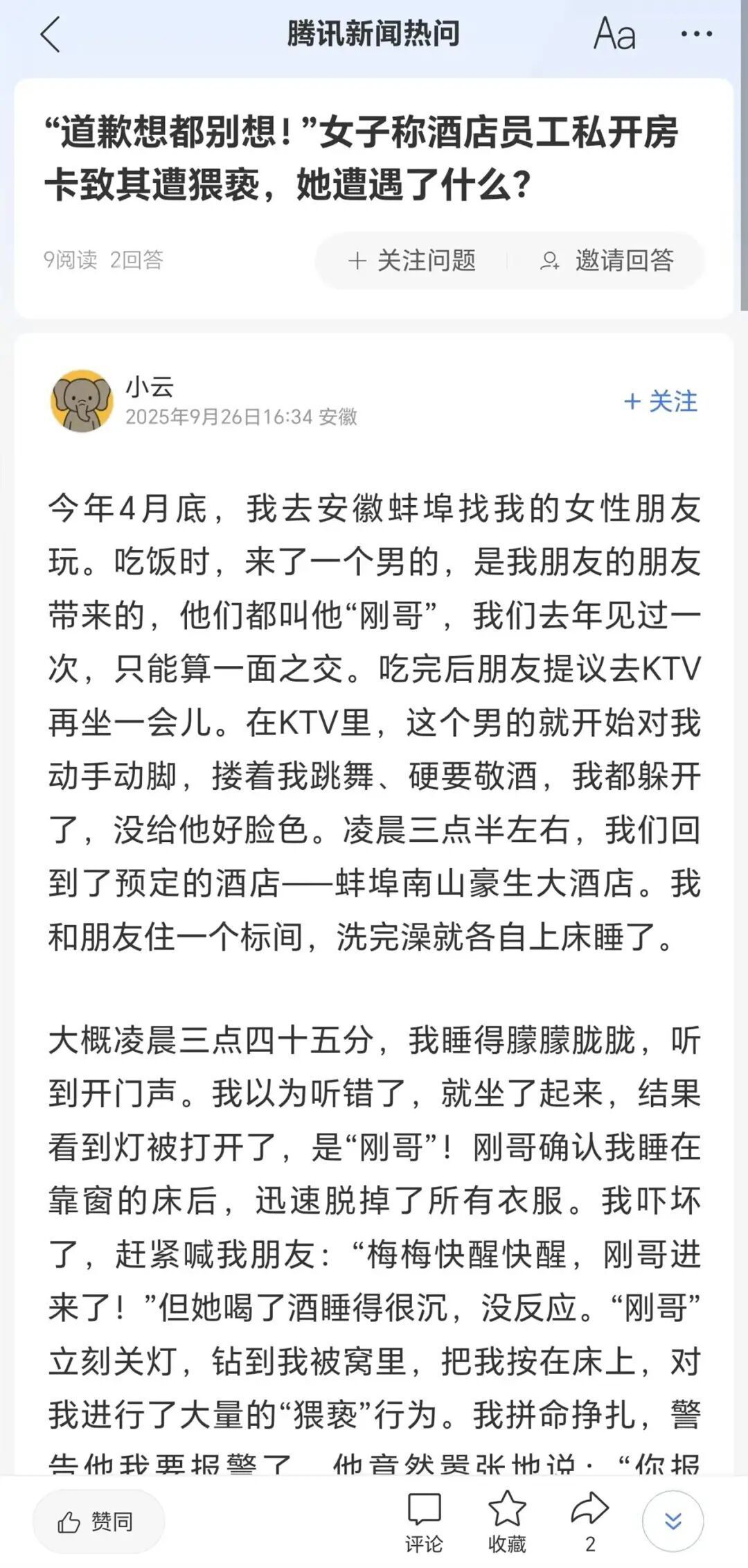 女子住高端酒店遭男子入室猥亵,男友因此退婚,质问酒店凭啥给卡